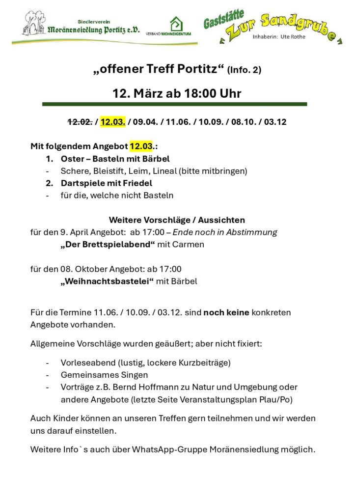 Veranstaltungen Portitz 2026